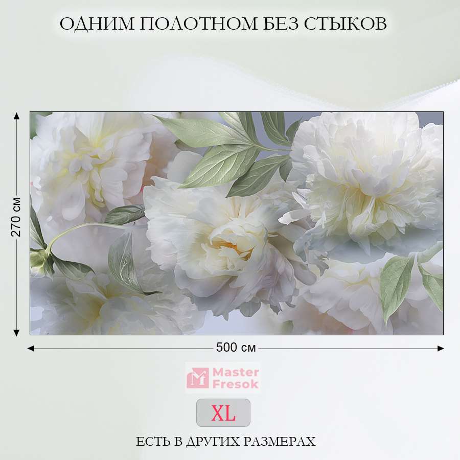Бесшовные фотообои Белые цветущие пионы, артикул 13-336, прекрасно подойдут к любому помещению: в гостиную, в спальню, в кухню или в детскую и украсят ваш интерьер. Купить фотообои в интернет магазине MasterFresok можно в нескольких типовых размерах: