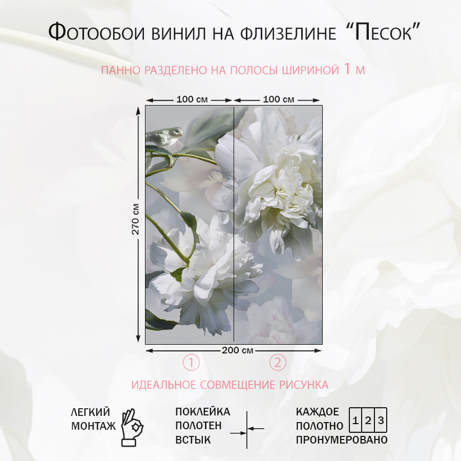 Фотообои Белые пионы 3д 7-609-S-Песок