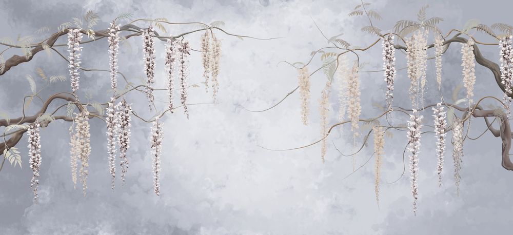 Фотообои Глициния на сером фоне 13-1121-S-Холст