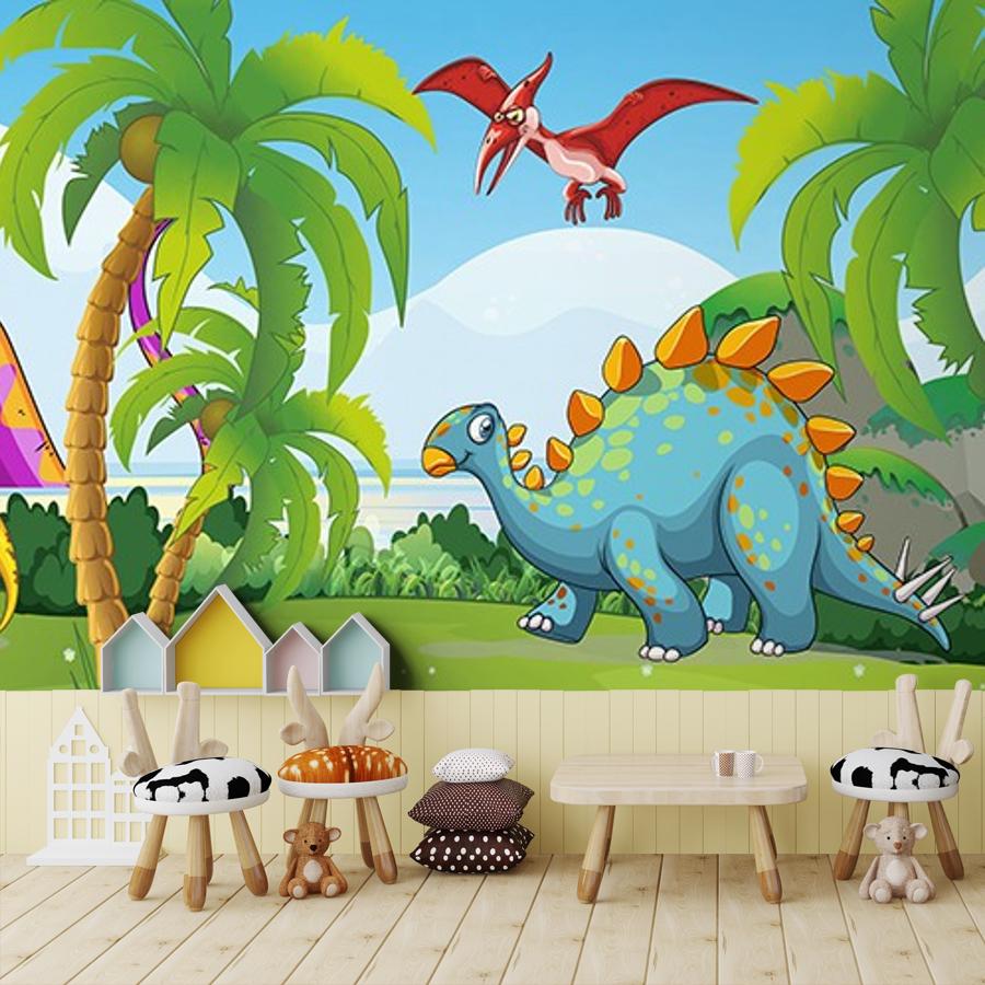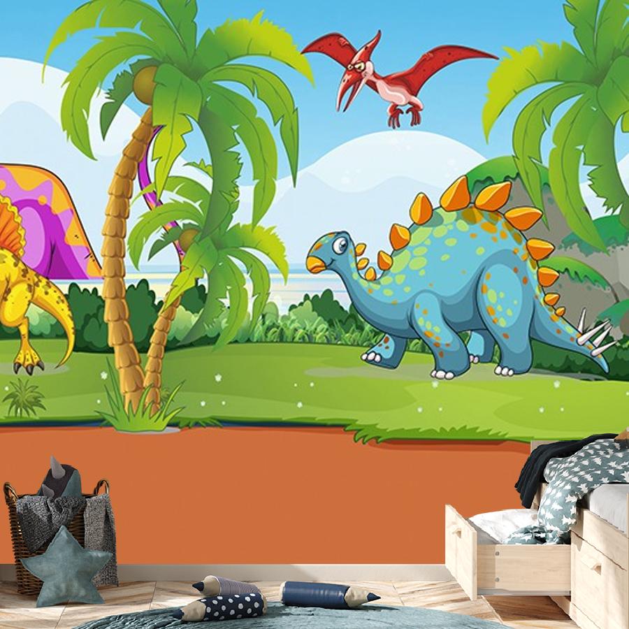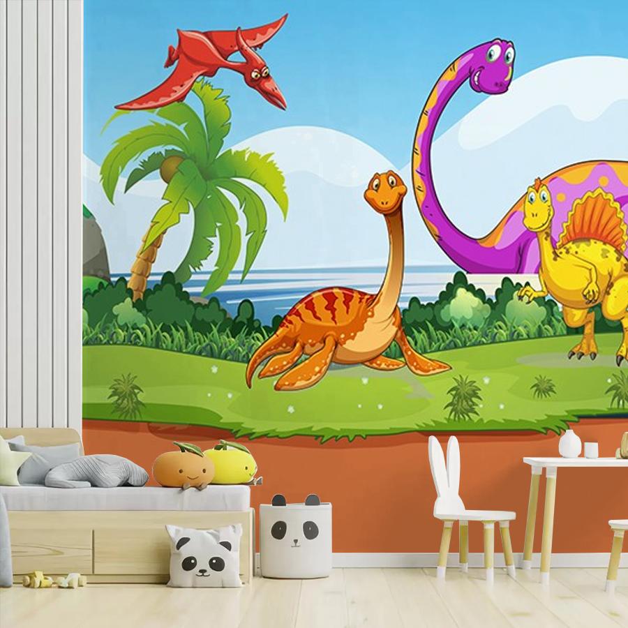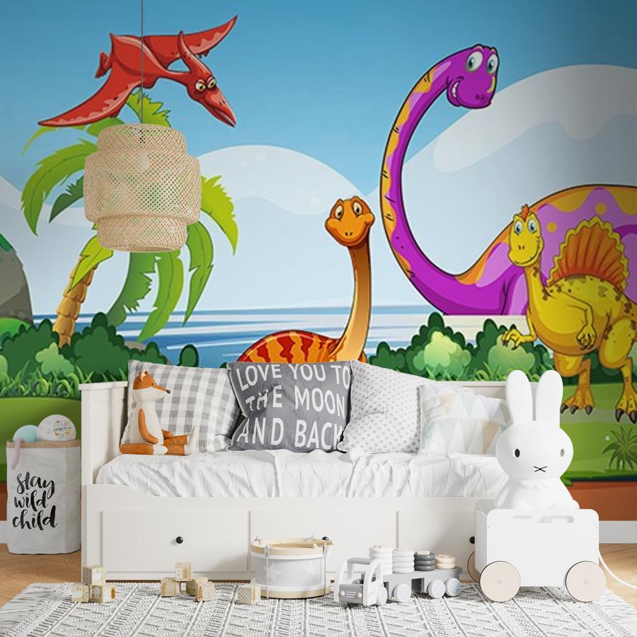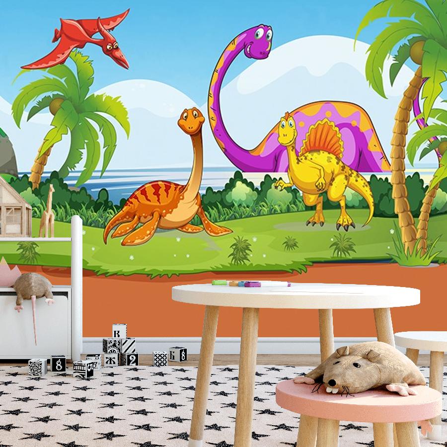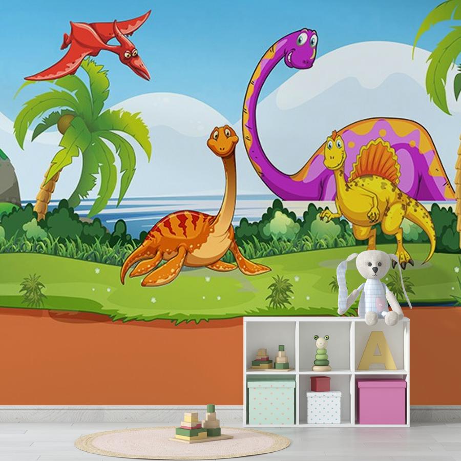 Фотообои Яркие динозавры на берегу в детскую 14-716-S-Холст
